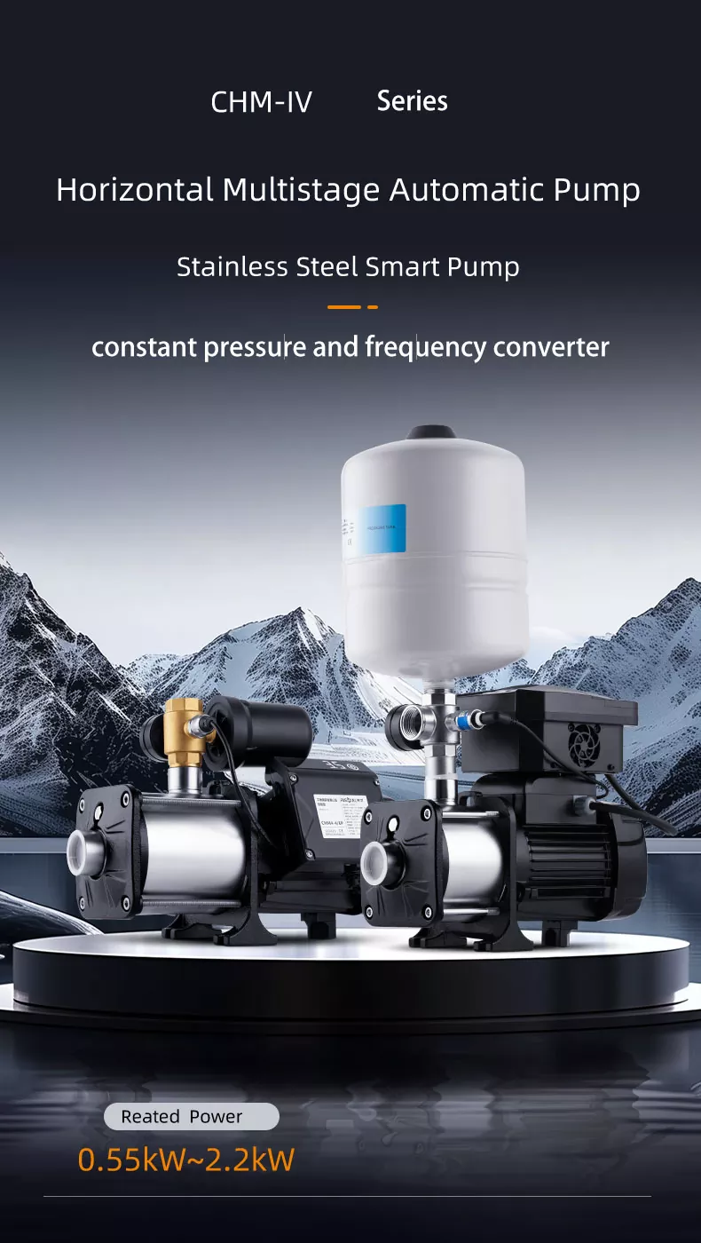 CHM12/IV Série Smart Inverter Series Horizontal Aço inoxidável Bomba centrífuga de vários estágios é um produto relativamente maduro no mercado atualmente com estrutura compacta e ruído de funcionamento estável, baixo operação, eficiência de até 44-70%. Todos os componentes de passagem de água são feitos de aço inoxidável AISI304. É amplamente utilizado em