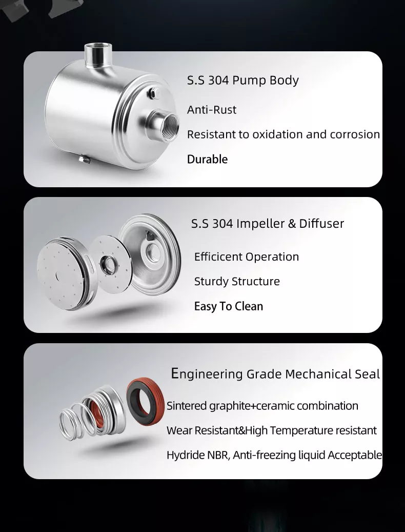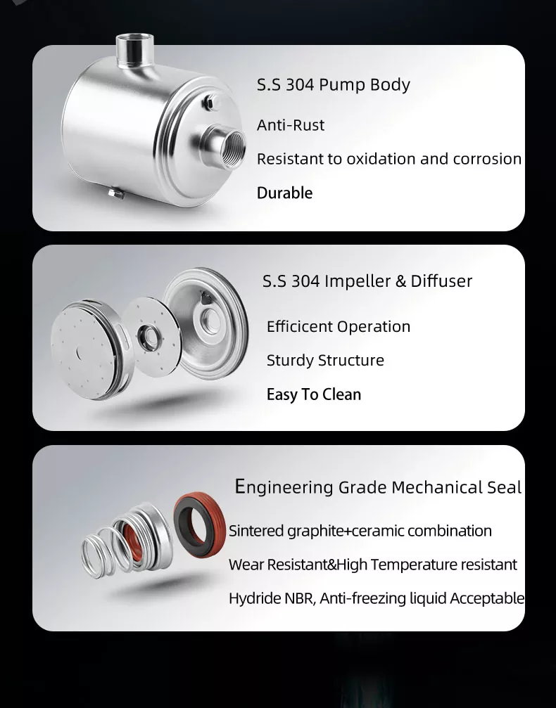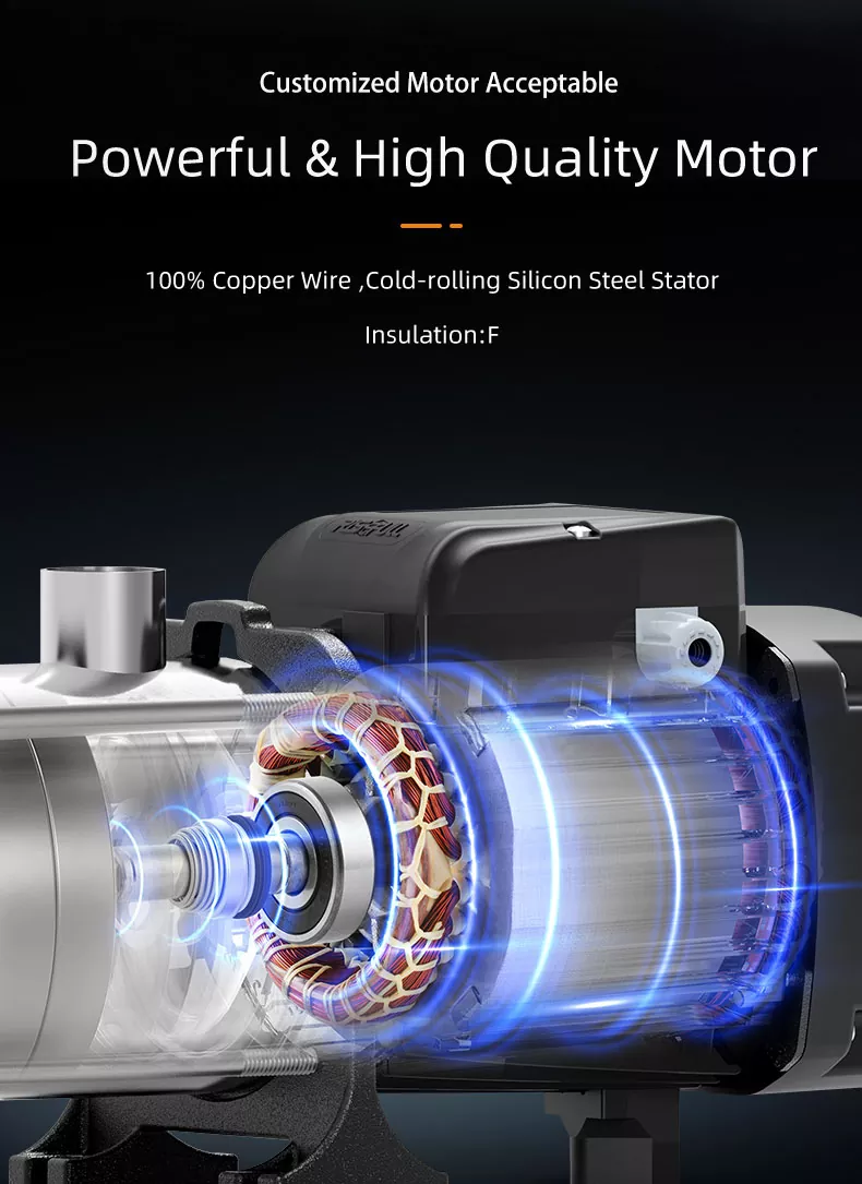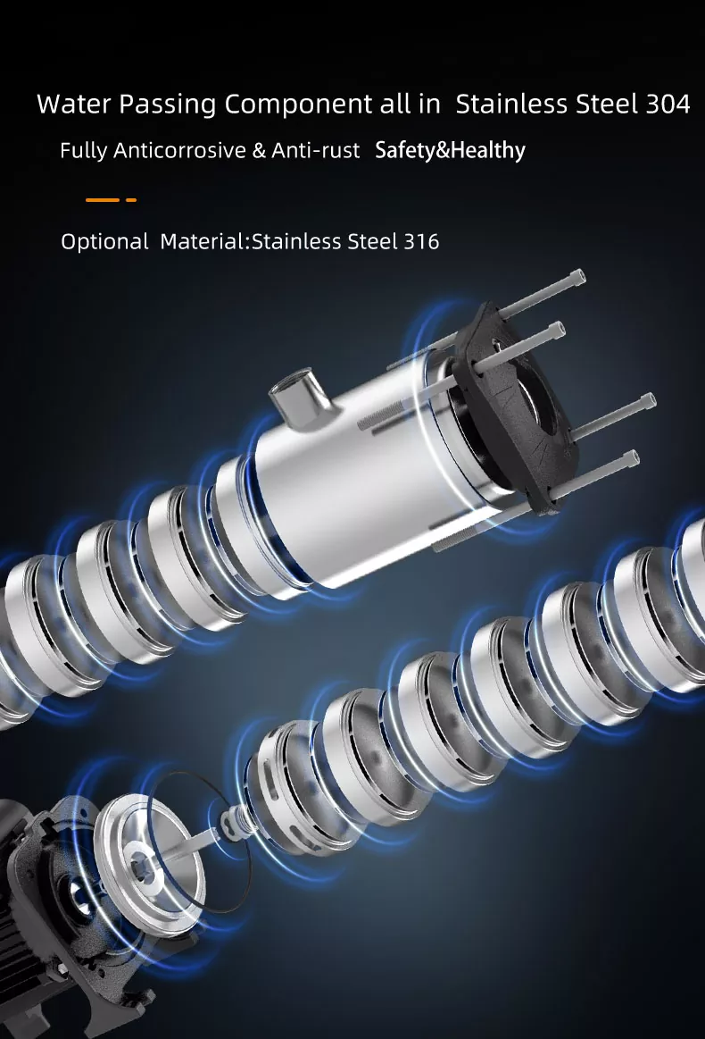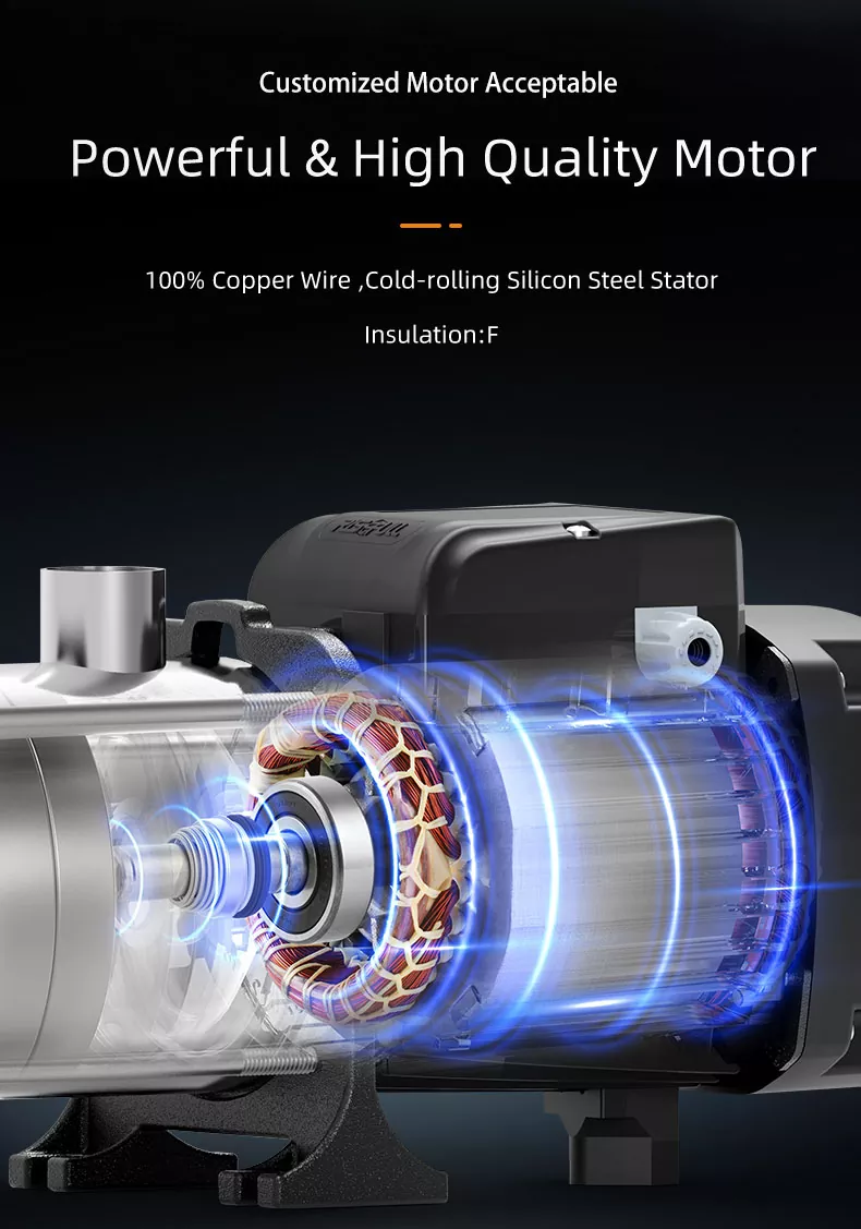 A durabilidade é fundamental quando se trata de bombas de água, e nossa bomba de pressão inteligente de vários estágios é construída para durar. Construído a partir de materiais de alta qualidade e projetado para confiabilidade a longo prazo, esta bomba é um investimento que o servirá bem nos próximos anos. Esteja você usando aplicativos residenciais ou comerciais, pode confiar que essa bomba suportará o teste do tempo.